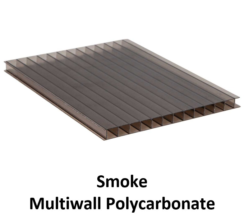 Multiwall Polycarbonate 8mm x 48″ x 10ft, 1UV Smoke